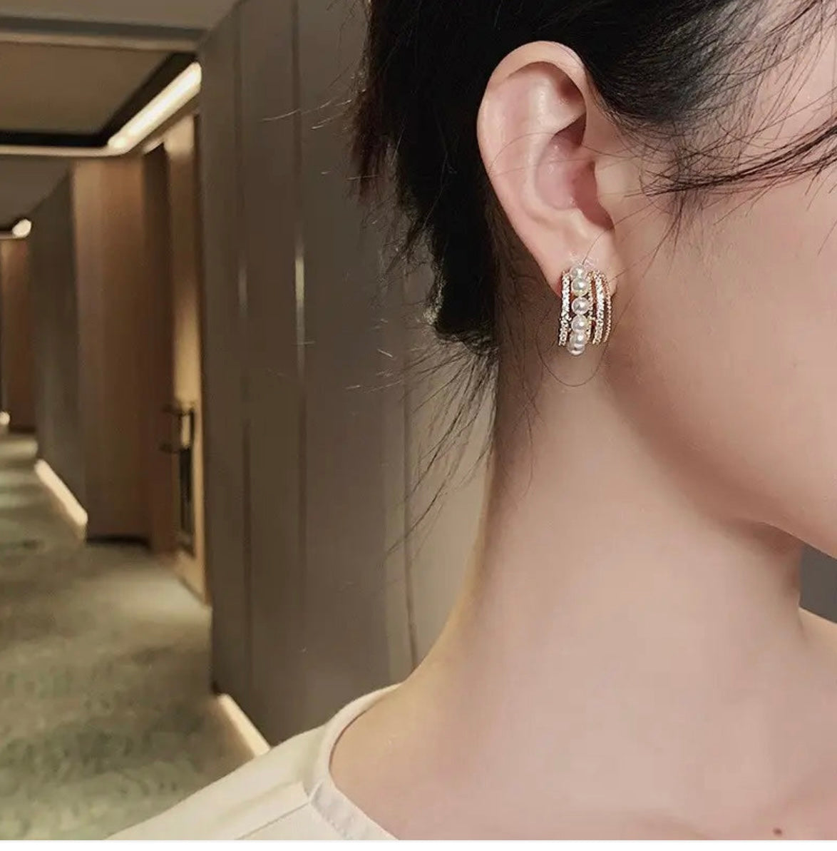 Triple Layer Pearl & CZ Statement Hoop